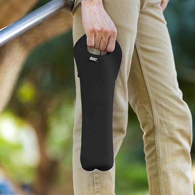 BUILT 1-Bottle Stain Resistant Neoprene Wine/Water Bottle Carry Tote, Black