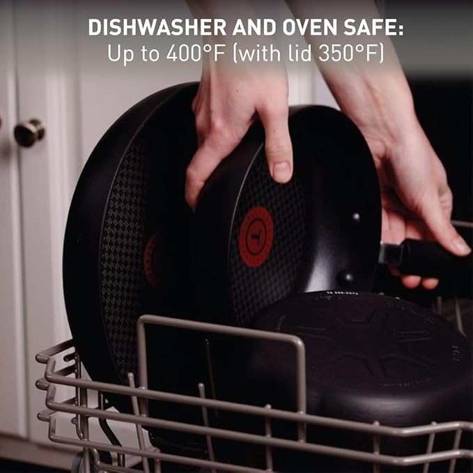 T-fal Ultimate Hard Anodized Nonstick Cookware Set 12 Piece, Oven Broiler Safe 400F, Lid Safe 350F, Kitchen Cooking Set w/ Fry Pans, Saucepans, Dutch Oven, Pots and Pans, Dishwasher Safe, Black