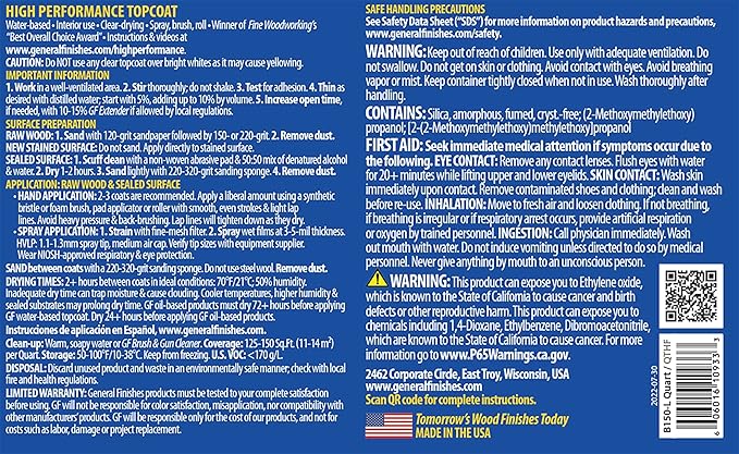 General Finishes High Performance Water Based Topcoat, 1 Pint, Flat