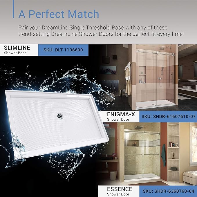 DreamLine SlimLine 36 in. D x 60 in. W x 2 3/4 in. H Center Drain Single Threshold Shower Base in White, DLT-1136600