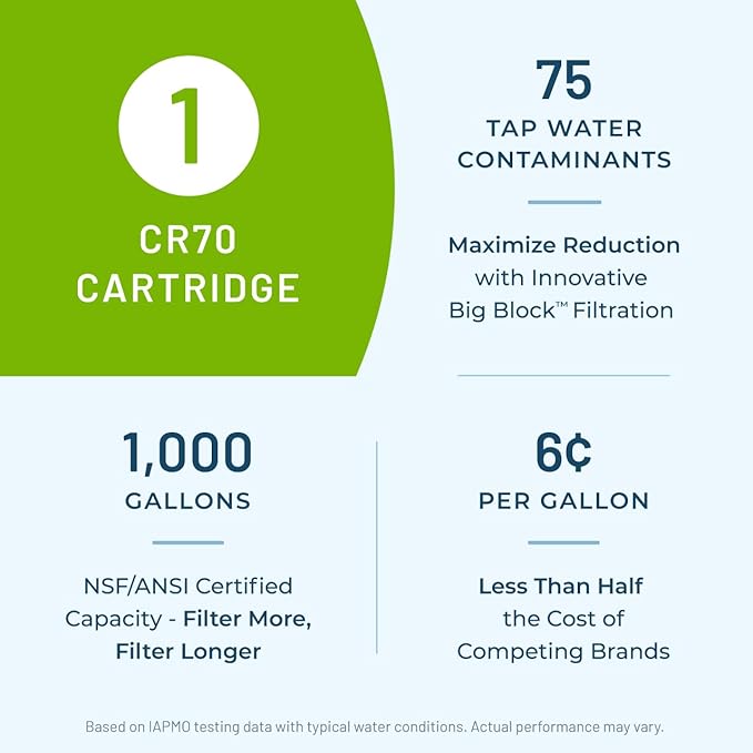 WaterChef Countertop Water Filter Replacement Cartridge CR70 (for WaterChef C7000), 1,000 Gallon Capacity, Certified for 75 Contaminants, Made in USA