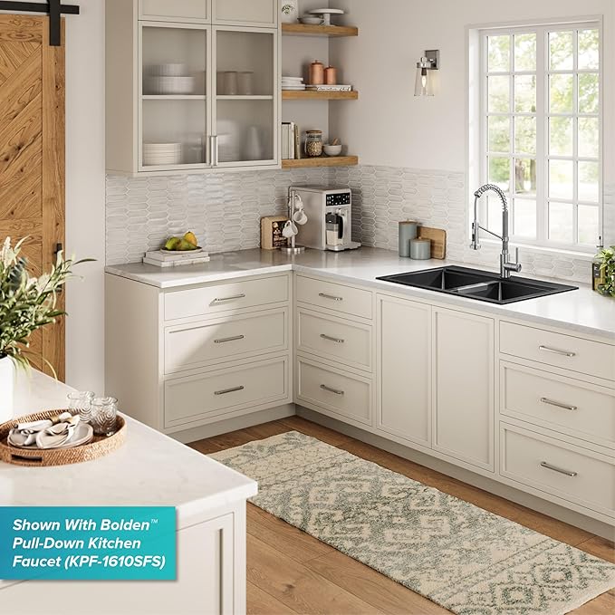 KRAUS Quarza 33-inch Drop-In/Undermount 50/50 Double Bowl Granite Kitchen Sink in Black Onyx, KGD-433B