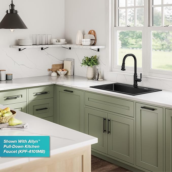 - GRANITE KITCHEN SINK made from durable quartz composite that offers the elegant look of natural granite with resistance to impact, scratches, and shock – UNIVERSAL DESIGN with clean lines complements any kitchen style, from traditional to modern