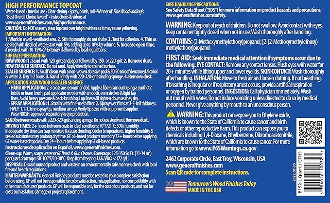 General Finishes High Performance Water Based Topcoat, 1 Pint, Satin