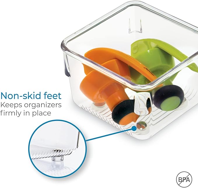 - STURDY: Non-skid feet prevent organizer from sliding in your drawers or on your countertop
