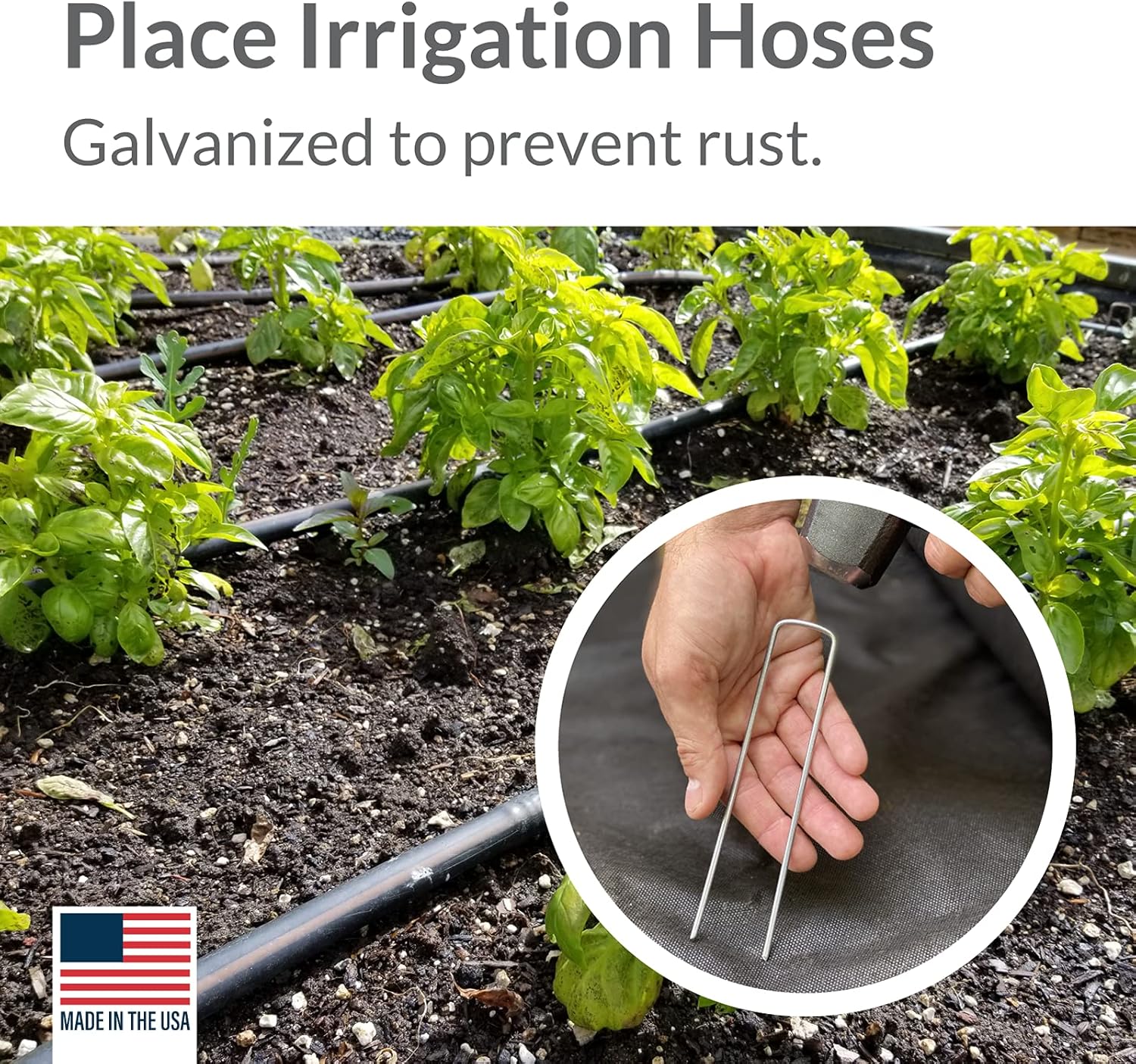 Pinnacle Mercantile USA Made 250 Pack Garden Landscape Staples Weed Barrier Fabric Stakes Galvanized 6 inch Pins Anti Rust Sod Staple 11 Gauge Steel