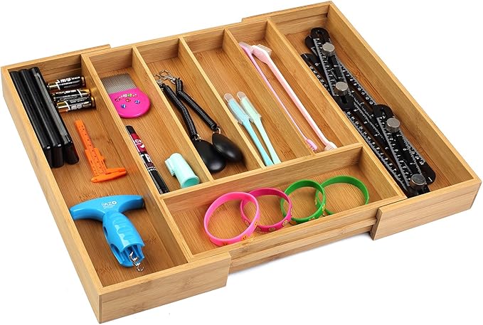 - Universal Storage Organizer: Expandable large compartments suitable for kitchen cutlery flatware, office supplies, garage tools, arts & crafts and sewing accessories. Maximize your available storage space drawers