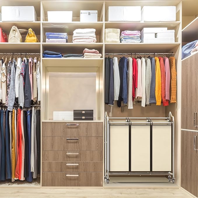 Simple Houseware Heavy-Duty 3-Bag Laundry Sorter Cart, Chrome