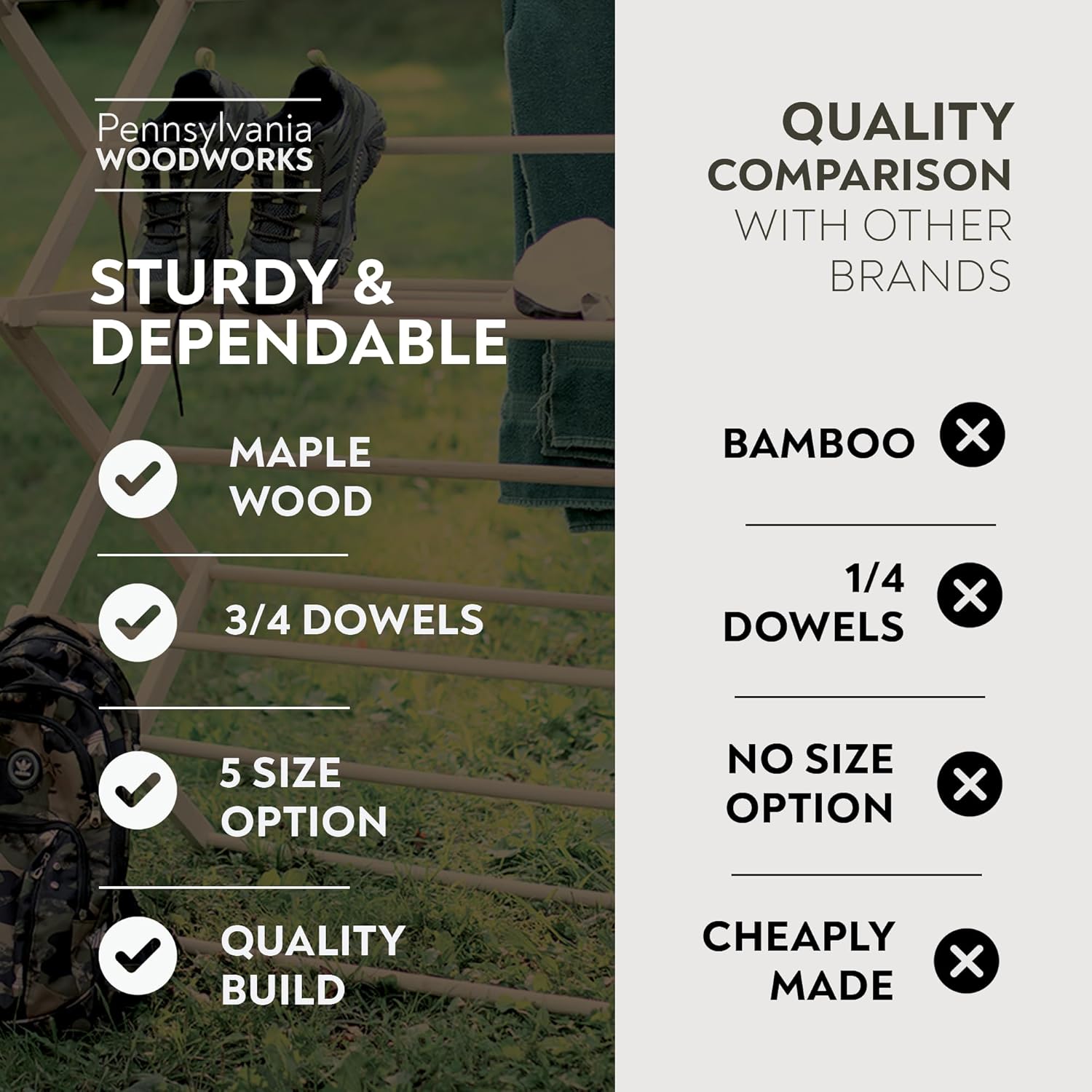 - Furniture-Grade Construction: Made in Pennsylvania's Amish Country (USA), this hand-crafted laundry drying rack features thick 1-1/4" hardwood slats & 3/4" wood dowels for strength & stability.