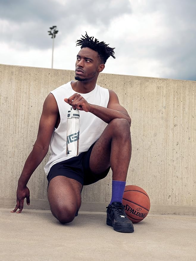 - LIGHTWEIGHT PREMIUM MATERIAL: This see through water bottle is crafted from Tritan Renew, high-grade material known for its featherweight properties. Comes with a removable fruit strainer to steep your favourite drinks and add a touch of colour.