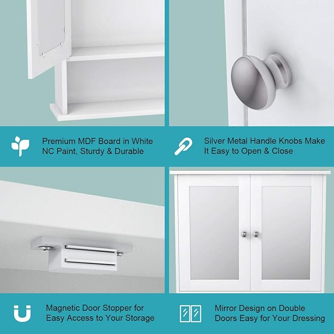 - Easy to Assemble: The double mirror door wall cabinet are easy to assemble and the all required accessories are included,. You can quickly assemble the item and use it in a clear and easy-to-understand manual.