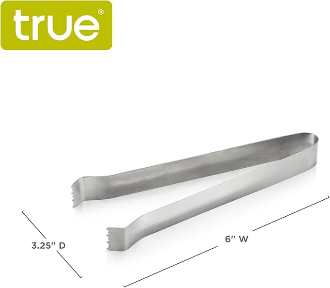 True Ice Tongs, Stainless Steel Ice Tongs for Cocktails, Bar Tools, Dishwasher Safe Serving Tools, 6 Inch Metal Tongs, Set of 1