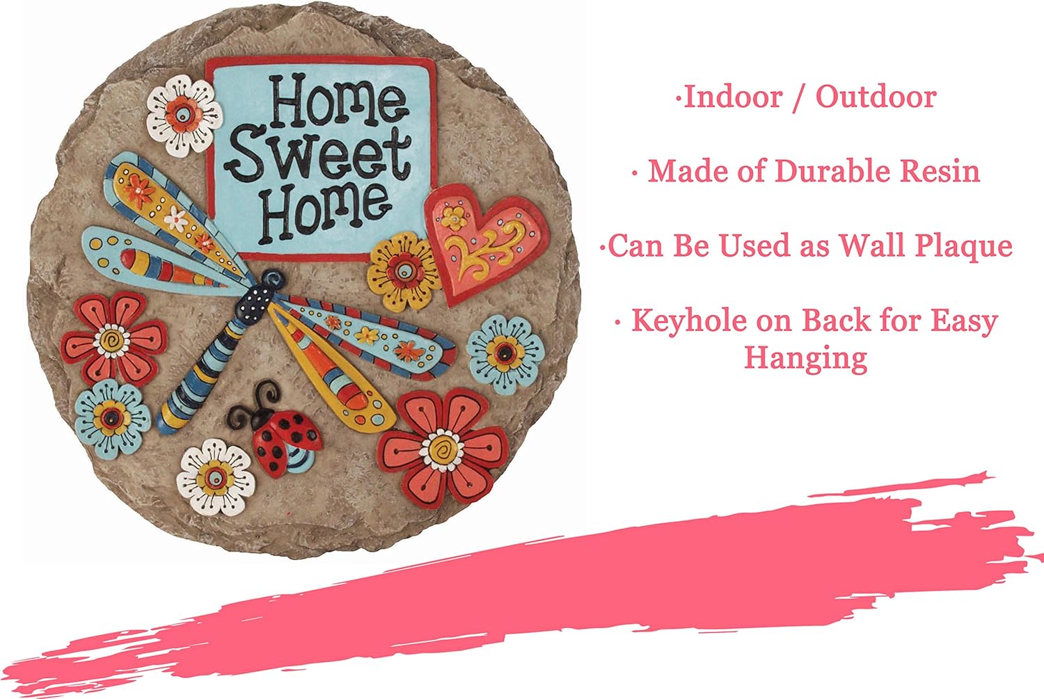 - outdoor décor - place your vibrant stepping stone in your garden or walkway. your stone is made of durable resin and is meant to withstand outdoor elements. resin prevents water damage and splitting.