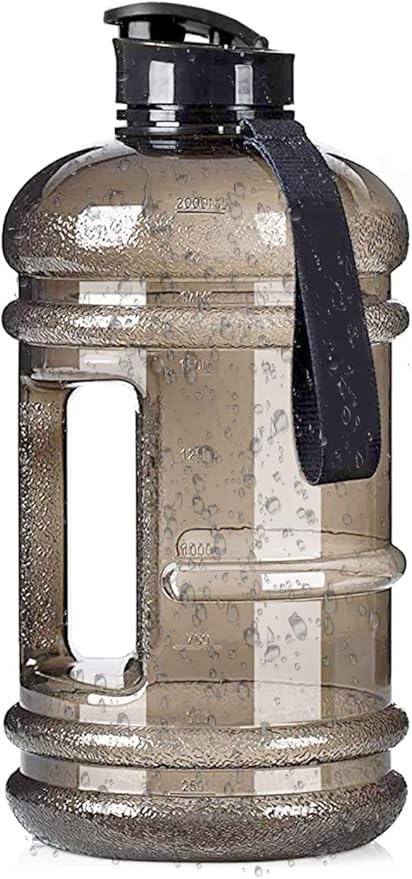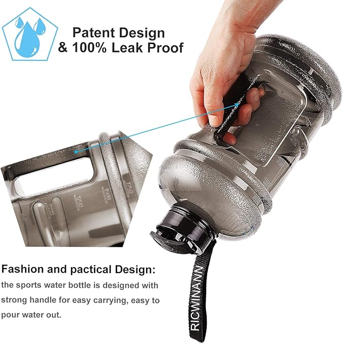 - 【Perfect Leakproof Design】One-Step Flip Cap like shaker bottle lid, allows you drink easily. Lid with silicone seal, absolutely 100% leakproof, even under fiercely shake. Half gallon water bottle with anti-slip handle and strong nylon strap enables the gym water bottle easy to carry and be hung anywhere.