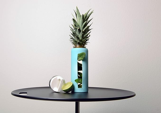 - RESISTANT & DISHWASHER SAFE: This blue water bottle is made out of high-grade broscilate glass. Its silicon cover offers a nice grip and protection in the event of slipping away. Extremely durable, heat resistant and dishwasher safe