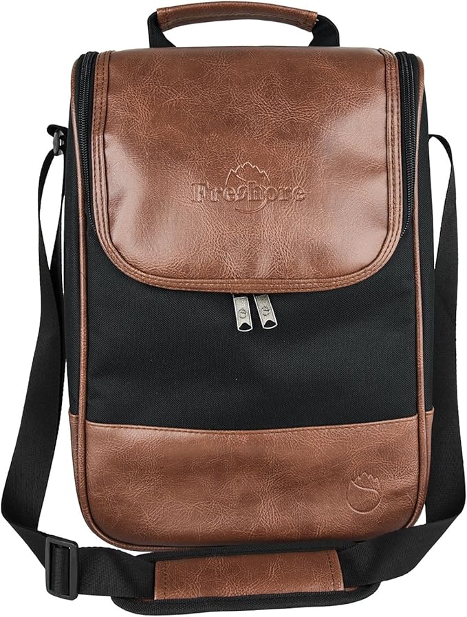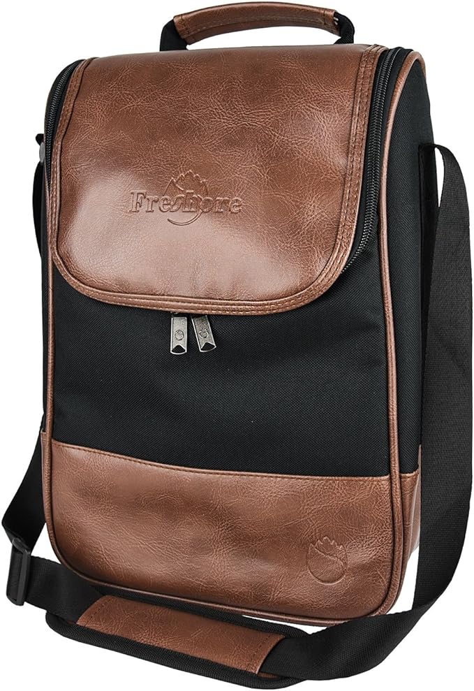 Freshore® Wine Leather Tote Cooler Insulated Bag - Luxury 2 Bottle Carrier Design For Lunch/Travel - Idea Gift For Women/Man