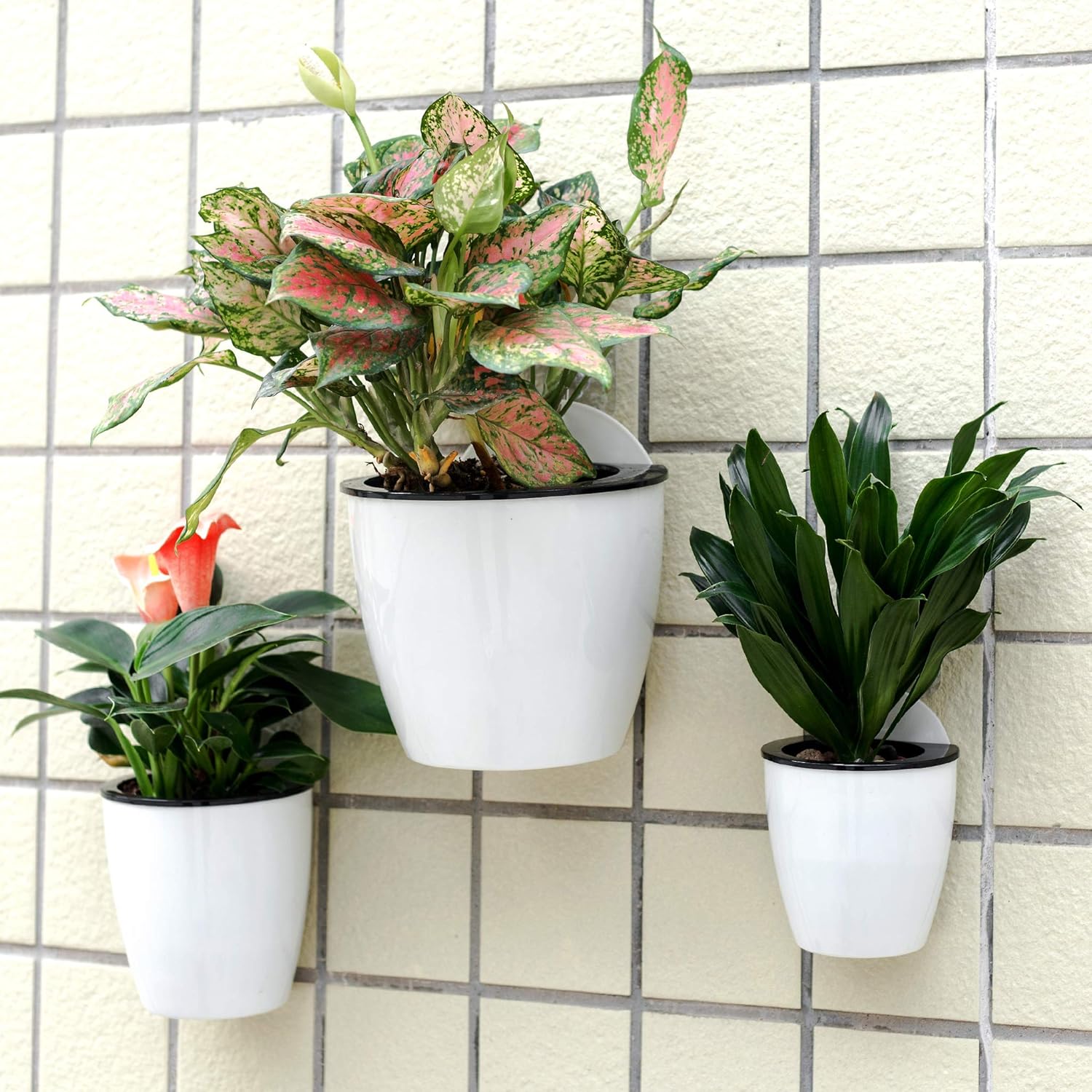 - Wall Décor: Wall decor planter pots holder with polishing processing modern design, sleek clear white, fancy slick surface, attractive looking, simple and artistic, will nicely compliment your home, office, kitchen, garden, lawn and patio. Vertical living wall planter, wall mounted indoor outdoor hanging flower pots, lazy self watering flowerpot, wall hang / window boxes.