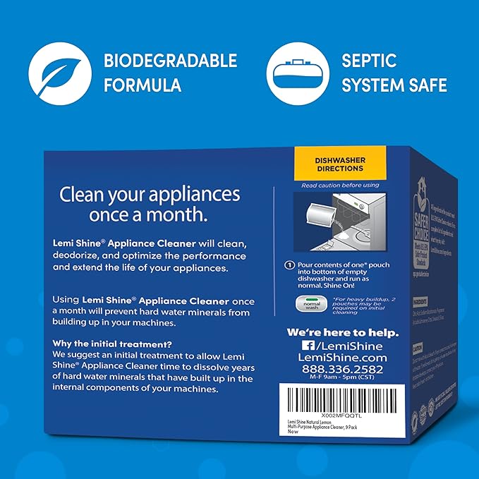 - MUCH MORE TO LOVE: Lemi Shine's cleaning products cover your home from top to bottom; Try Dishwasher pacs, dish detergent Booster our Toilet bowl cleaner and more
