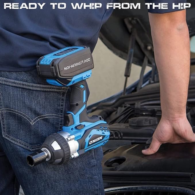 - HIGH-POWERED IMPACT WRENCH: The NEIKO cordless impact wrench features a strong motor impact frequency of 0 to 3,500 bpm with a no-load speed of 0 to 3,000 rpm to constantly deliver high performance. Plus, it produces 300 ft-lb of max torque power every time.