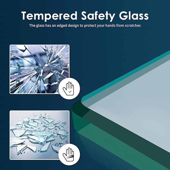 - Safety Tempered Glass – It is in 1/4" (6mm) thickness and certified by ANSI with explosion-proof film. The glass corner design also makes it is not easy to scrape things, very safe