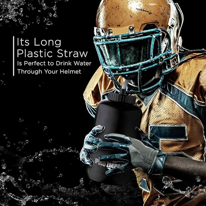 Pro Impact Squeezable Water Bottle Bendable Long Straw - LDPE BPA Free Plastic - Hydration for Baseball Hockey Gym MMA Yoga Boxing Cycling Softball Football Lacrosse (35.5 Oz.)