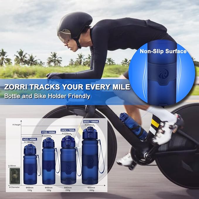 - ✔ BPA FREE & NO ‘ PLASTIC ’TASTE: ZORRI Sports Bottle with 100% BPA Free, BPS Free, Tritan Co-polyester plastic, Food Grade PP material lid, Food Grade Silicone seal ring. Best Water Bottle which does no harm to our body and it is eco-friendly. Standard bottle body size fits most car cup holders and bike cages, easy to take anywhere. It's a must have sport water bottle for the Gym, Yoga, Runners, Athletes, Crossfit, Travel, Hiking, Cycling, Tennis, Camping, Work Office, School, work.