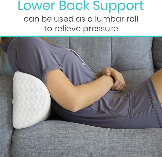 - ELEVATE AND SUPPORT: Use the half moon cushion to elevate the ankles, legs and knees or position between the knees to promote proper hip alignment for side-sleepers.