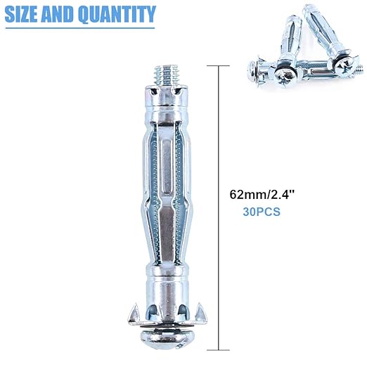 - ★【Durable Quality】: All the hollow wall anchors are made of carbon steel, with zinc plated on the surface, strong and durable, They will provide strong support and not easy to break during installation.