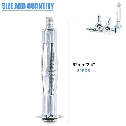 - ★【Durable Quality】: All the hollow wall anchors are made of carbon steel, with zinc plated on the surface, strong and durable, They will provide strong support and not easy to break during installation.