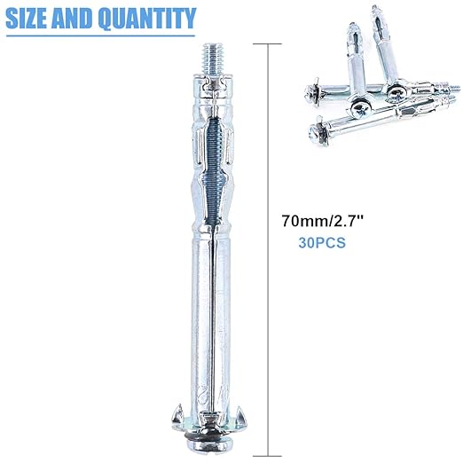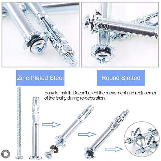 - ★【Durable Quality】: All the hollow wall anchors are made of carbon steel, with zinc plated on the surface, strong and durable, They will provide strong support and not easy to break during installation.