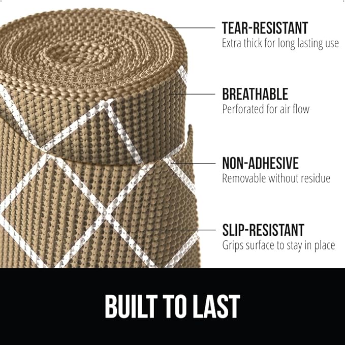 Gorilla Grip powerGRIP Drawer Shelf and Cabinet Liner, Thick Strong Hold, Non-Adhesive Liners Protect Kitchen Cabinets and Cupboard, Bathroom Drawers, Easy Install, Breathable Mat, 20" x20', Beige