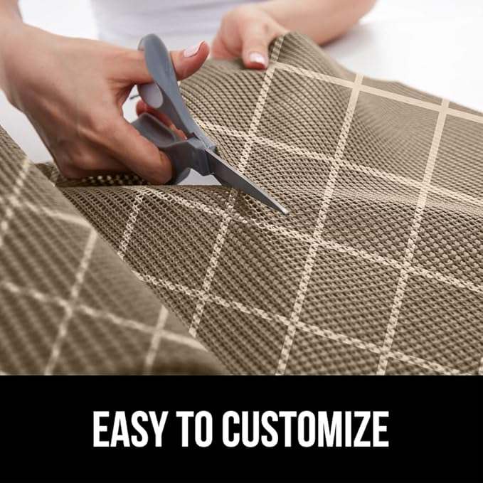 Gorilla Grip powerGRIP Drawer Shelf and Cabinet Liner, Thick Strong Hold, Non-Adhesive Liners Protect Kitchen Cabinets and Cupboard, Bathroom Drawers, Easy Install, Breathable Mat, 17.5" x10', Beige