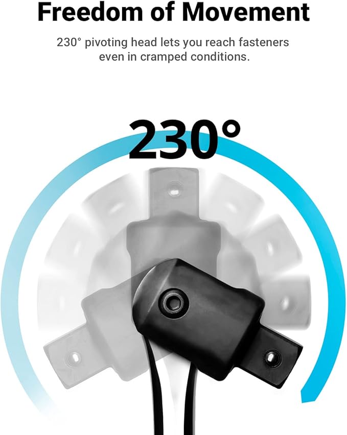 - Rotates 230-degree for dynamic utilization in a variety of jobs
