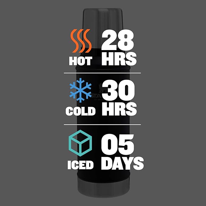 - KEEP IT HOT OR COLD: Our Stanley Classic Vacuum Bottle is made with superior insulation that keeps liquids (soup, coffee, tea) hot or cold drinks cool for up to 24 hours. It’s also made with BPA-free materials, keeping its contents safe to consume.