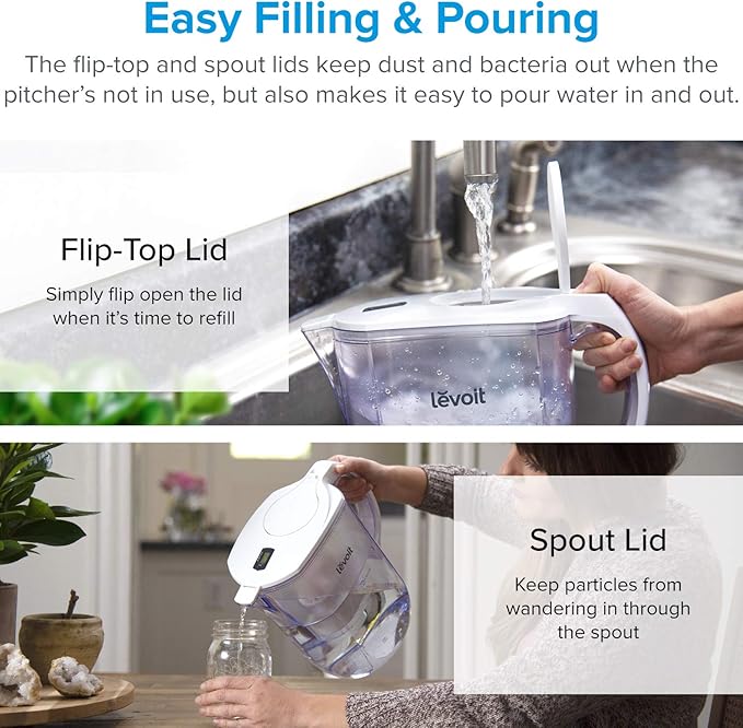 Levoit LV110WP Water Filter Pitcher for Tap and Drinking Water with 1 Standard Filter, Lasts 2 Months, 10 Cups Capacity, BPA Free, White