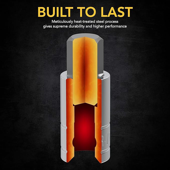 - DURABLE - Drop-forged, Heat-treated S2 alloy steel bits, Reduce wear-outs. Hardened treated Chrome Vanadium steel sockets, Increase turning power.