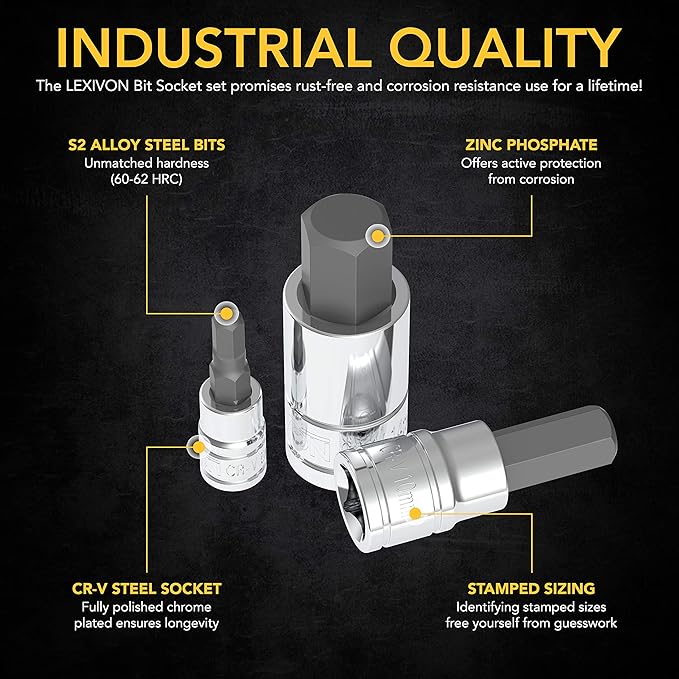 - LONGEVITY - Complete rust and corrosion resistance with fully polished, Chrome plated mirror finish sockets and Zinc Phosphate bits treatment.
