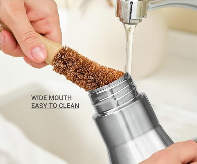 - ✅This bottle is easy to clean and maintain, Use a mild detergent or dish wash liquid and clean on the inside with a bottle brush