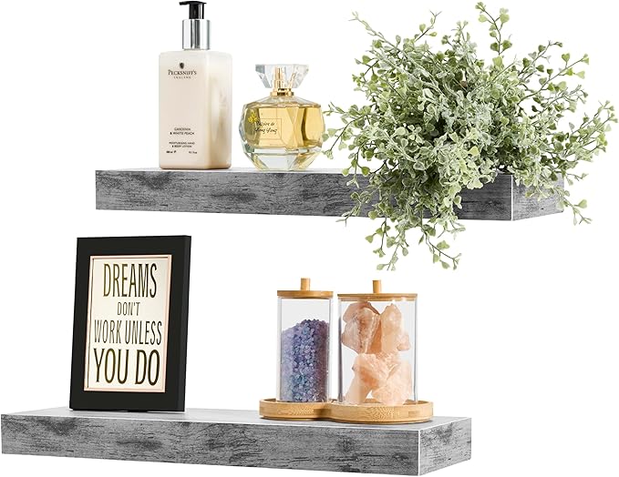 Sorbus Floating Shelves for Wall, Bathroom Shelves Wall Mounted for Kitchen, Bedroom, Bathroom Storage Over Toilet, Hanging Book Shelf for Wall Home Decor Living Room (Gray, 2 Pack)