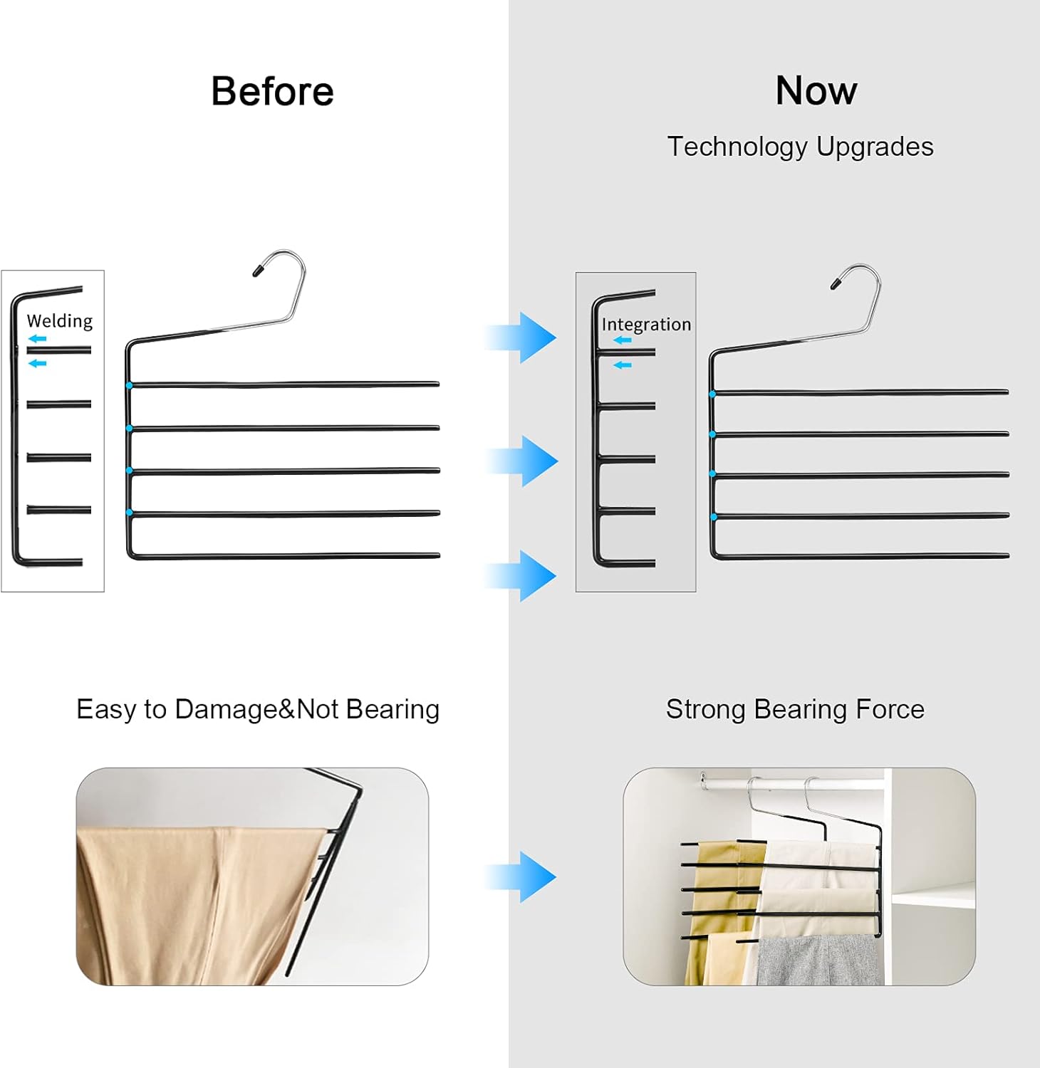 Nature Smile Pants Hangers 3pack, Heavy Duty Multi Layers Space Saving Slack Hangers,Non Slip 5 Tier Open-Ended Pants Hanger Closet Storage Organizer for Garden Flags Trousers Jeans Scarf