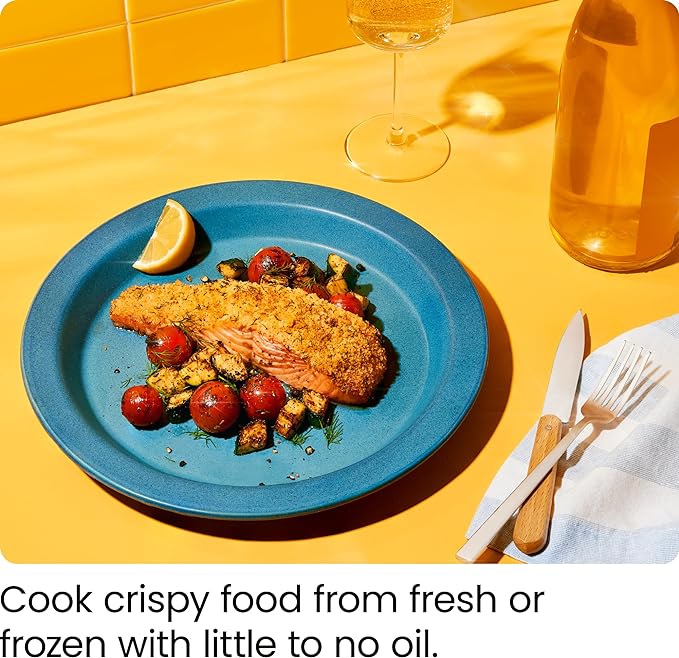 - PERFECTLY CRISPY RESULTS: Achieve perfectly crisp results for a wide variety of foods, with little or even no oil. The Dual knob controls both temperature & time; 60-minute integrated timer easily lets you air-fry everything from frozen veggies to mozzarella sticks, chicken or fries, and even re-heat yesterday's dessert. No need to worry about overcooking – once the timer is up, the fryer will automatically shut off.
