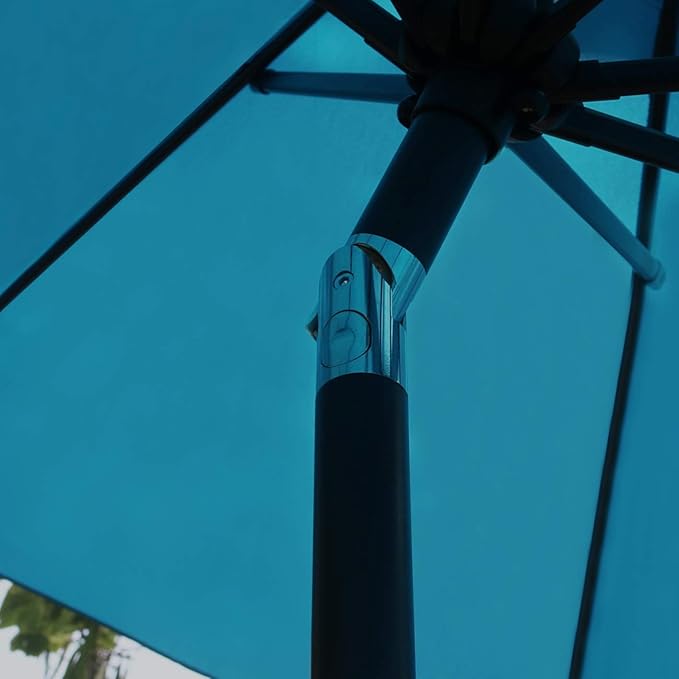 Sunnyglade 9' Solar LED Lighted Patio Umbrella with 8 Ribs/Tilt Adjustment and Crank Lift System (Teal Blue)