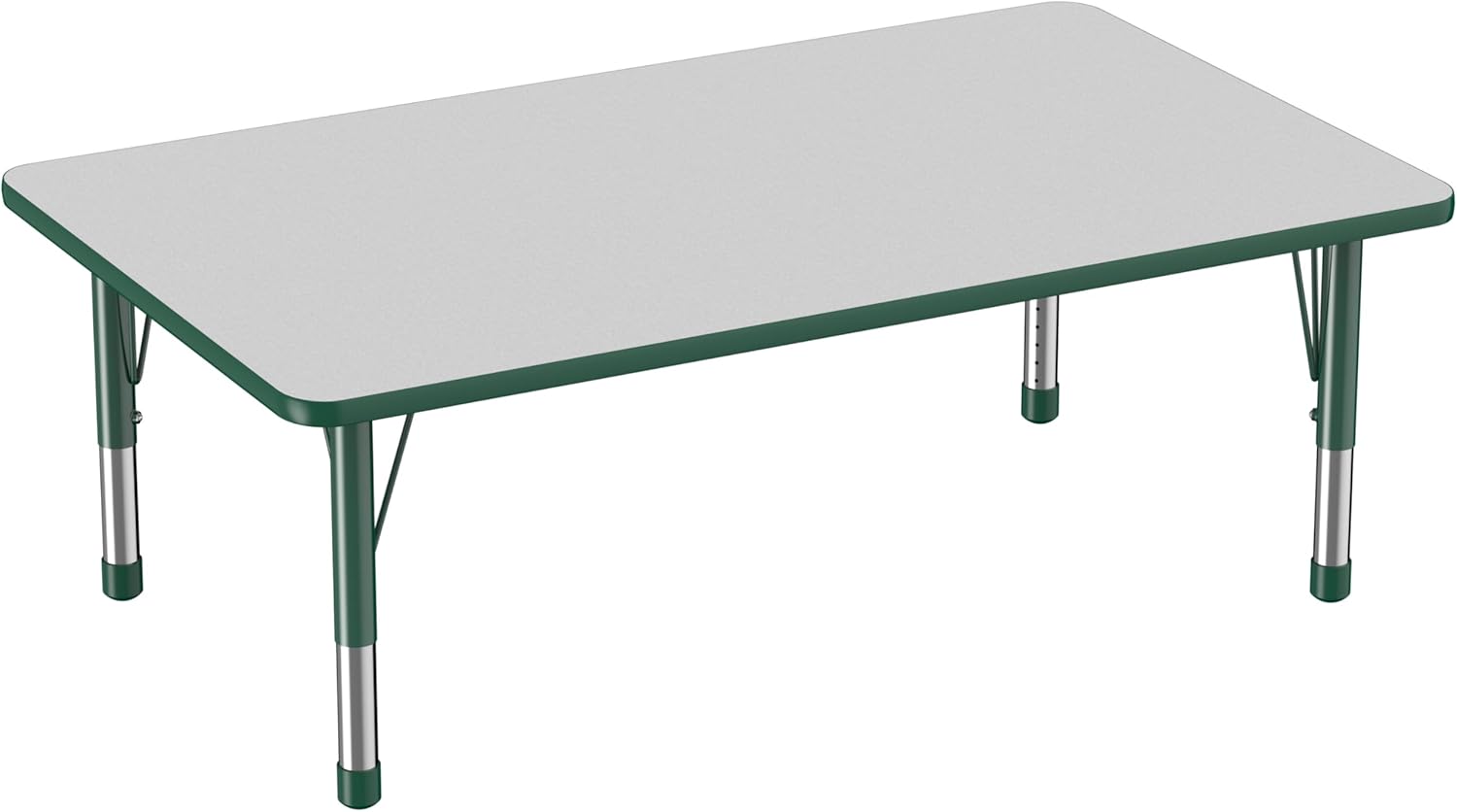 Factory Direct Partners FDP Rectangle Activity School and Classroom Kids Table (36 x 60 inch), Toddler Leg, Adjustable Height 15-24 inches - Gray Top and Green Edge