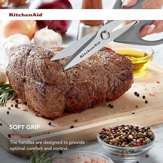KitchenAid All Purpose Kitchen Shears with Protective Sheath for Everyday use, Dishwasher Safe Stainless Steel Scissors with Comfort Grip, 8.72-Inch, Gray
