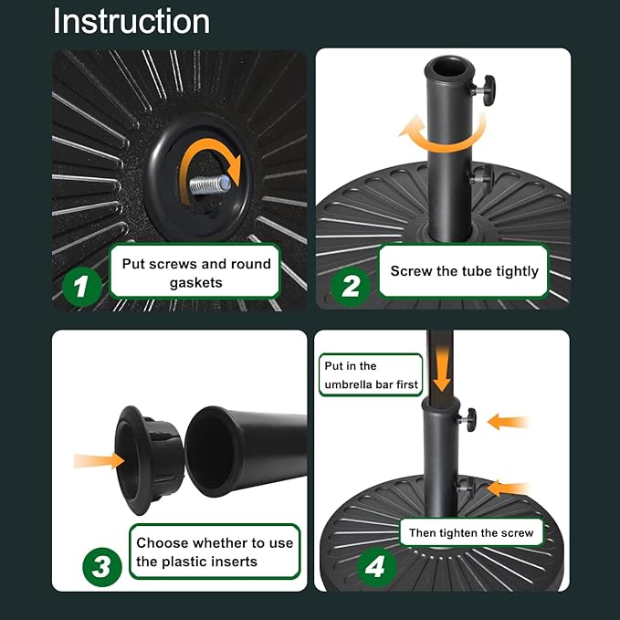 - Equipped with adjustable piston, a wide range of application, can be adjusted according to the thickness of the umbrella column.Umbrella Pole Diameter Range:φ1.5" - 1.96".