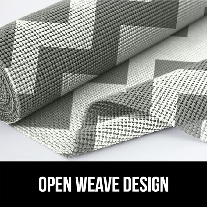 Gorilla Grip powerGRIP Drawer Shelf and Cabinet Liner, Thick Strong Hold, Non-Adhesive Liners Protect Kitchen Cabinets and Cupboard, Bathroom Drawers, Easy Install, Breathable Mat, 17.5"x30', Chevron