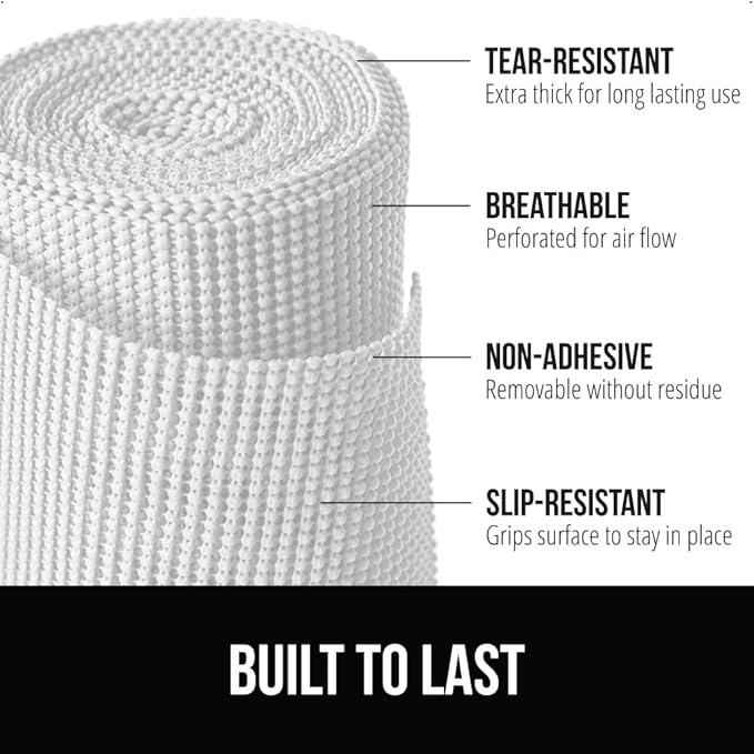 - EXTRA STRONG GRIP NON-ADHESIVE LINER: the Gorilla Grip powerGRIP liner is a non adhesive and tear resistant liner engineered with the highest quality materials to reduce slipping and bunching in your drawers or cabinet shelves; superior gripping technology keeps both the liner in place on surfaces