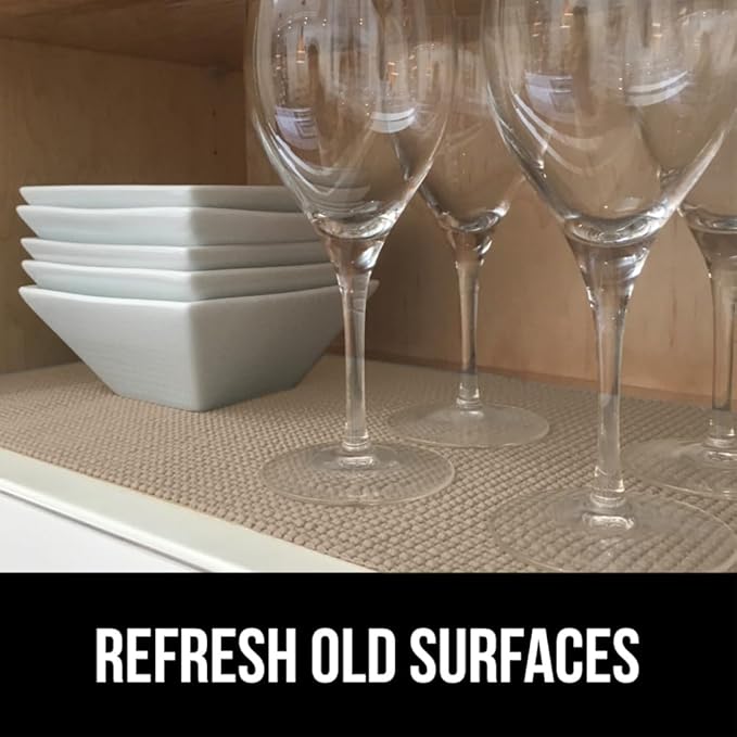 Gorilla Grip powerGRIP Drawer Shelf and Cabinet Liner, Thick Strong Hold, Non-Adhesive Liners Protect Kitchen Cabinets and Cupboard, Bathroom Drawers, Easy Install, Breathable Mat, 12" x30', Beige