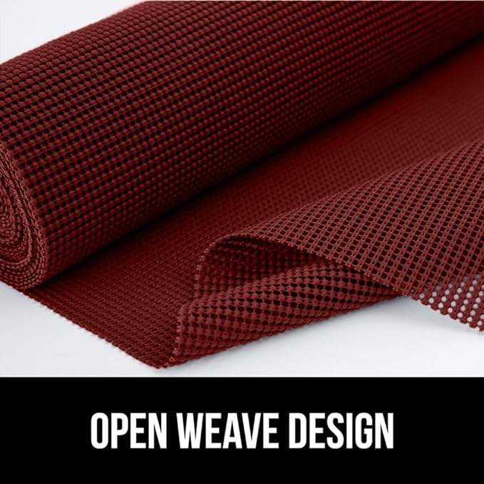 Gorilla Grip powerGRIP Drawer Shelf and Cabinet Liner, Thick Strong Hold, Non-Adhesive Liners Protect Kitchen Cabinets and Cupboard, Bathroom Drawers, Easy Install, Breathable Mat, 12" x30', Red