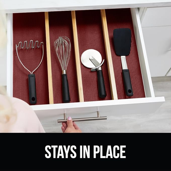 - KEEP ITEMS IN PLACE: thick and durable Gorilla Grip Drawer and Shelf Liners line your drawers and effectively helps to prevent items from moving and shifting around